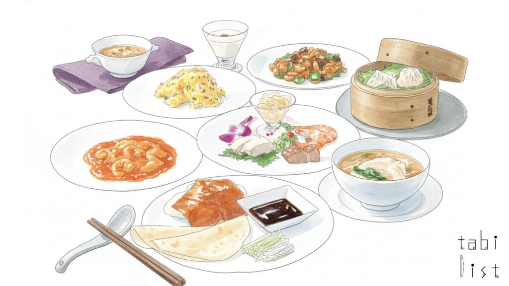 お店の顔ともいえる人気メニューの一つが、じっくりと焼き上げられた北京ダックです。皮の香ばしさ、脂の旨味、そして丁寧な調理が織りなす奥深い味わいが凝縮された逸品として人気を集めています。また、リニューアルを記念して登場した贅沢な料理にも注目が集まっています。それは、鮑やフカヒレなど15種類もの高級食材を惜しみなく使い、時間をかけて煮込まれた**壺蒸しスープ「佛跳牆(ぶっちょうしょう)」**です。その深い滋味と、口の中でとろけるような食感から、「あまりの美味しさに修行僧も思わずお寺の塀を飛び越えて食べに来る」という珍しいいわれがあるほどで、歴代の中国皇帝にも愛された幻のスープです。その他にも、プリプリとした海老の食感が楽しい**海老のチリソース**や、野菜のシャキシャキ感を大切にした**牛肉とピーマンの細切り炒め**など、アラカルトメニューも充実しています。ご家族のお祝い事やビジネスでの会食、大人数でのパーティなど、さまざまな用途に合わせて、6名様から70名様まで利用できる大小さまざまな個室がご用意されています。プライベートな空間で、伝統と革新が息づく本格的な中国料理を心ゆくまで楽しめます。