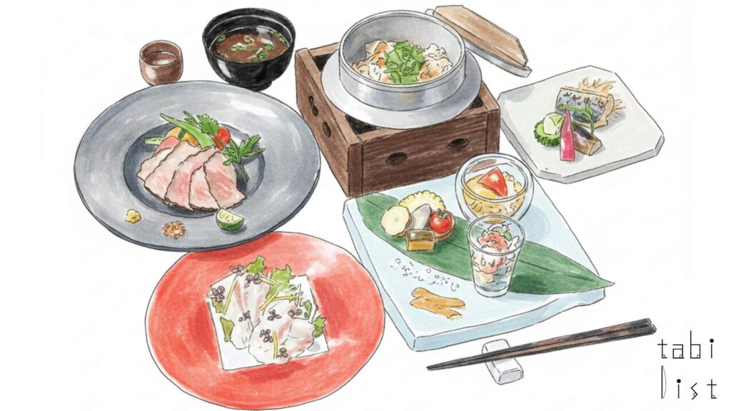 お料理は、旬の食材を活かしたコース料理が充実しており、なかでもメインディッシュに黒毛和牛を楽しめる春秋コースは、このお店一番の人気を誇るメニューです。ランチタイムには、春秋御膳として日替わりの主菜(イベリコ豚のローストやその日届いた鮮魚のお料理など)を中心に、炊き立てのご飯や味噌汁、デザートが付く充実した内容の御膳が提供されています。その他にも、事前予約が必要な特別な黒毛和牛の炭火焼き御膳や、新鮮な和牛を炙り、薬味と味わう和牛炙りたたき御膳など、お昼のひとときを贅沢に彩るメニューが揃っています。