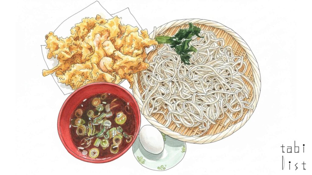 お店を訪れたら、まずは看板メニューとして高い人気を集める、温かいそばの天ぷらそばを試してみてはいかがでしょうか。もちろん冷たいそばがお好みでしたら、巨大な**かき揚げ**を存分に楽しめる天ざるもおすすめです。特に天ざるは、暑い季節に涼を呼ぶメニューとして、春から夏にかけて人気を集めています。太くしっかりとしたコシのある十割そばは食べ応えがあり、食感豊かな**かき揚げ**との組み合わせは満腹感もばっちりです。