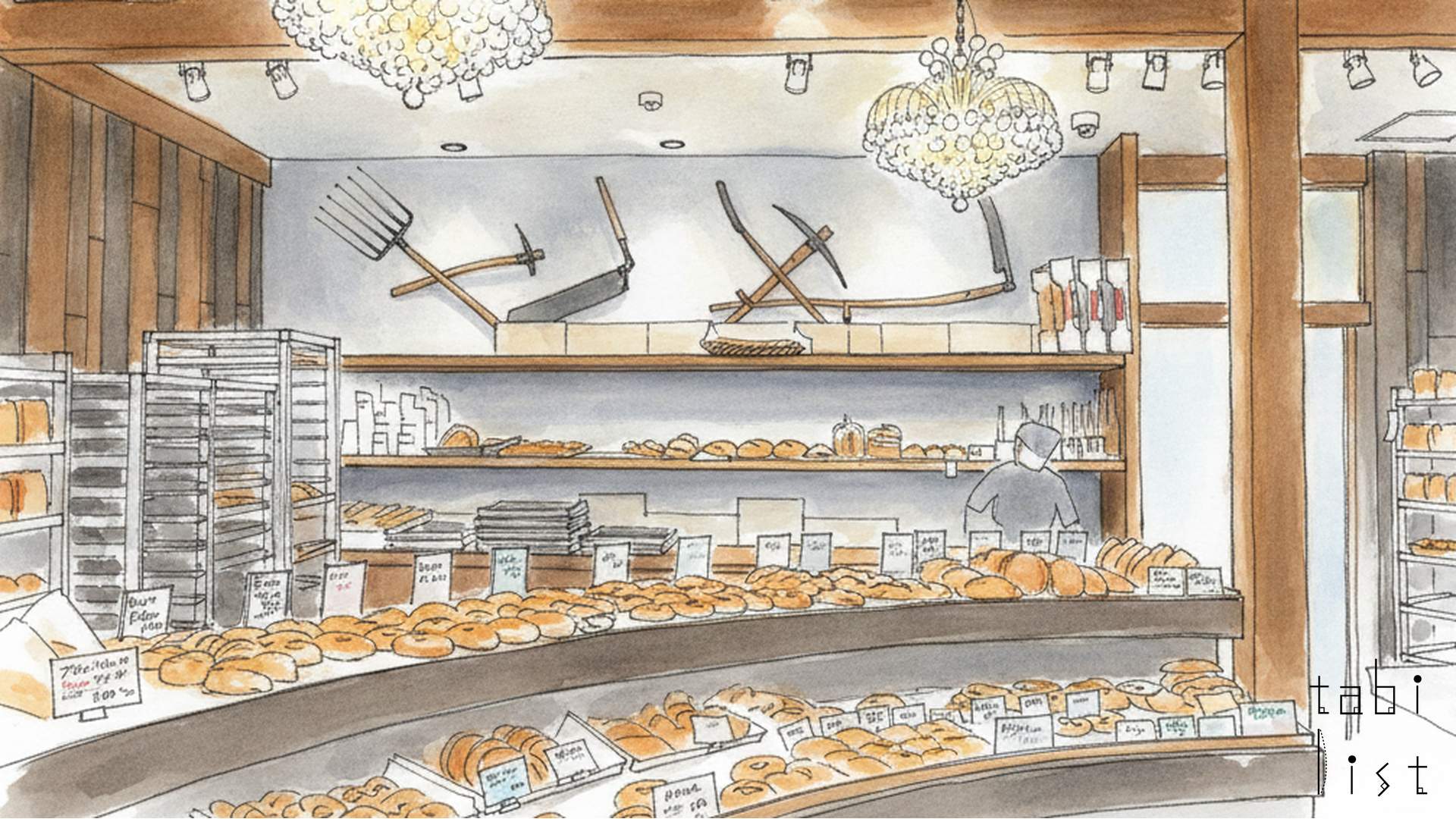 たま木亭の大きな特徴は、なんといっても玉木さんのパン作りへのひたむきな思いが込められているところです。玉木さんは、パンの味を左右する大切な生地作りに特に力を入れていらっしゃいます。開店以来、パンの仕込みは玉木さんお一人で手がけており、ほとんどご自宅には戻らず、お店の2階に泊まり込み、深夜2時から生地作りを始めるほどです。パンのおいしさを追求するために、生地の状態を深く考え、全ての工程を丁寧に管理されています。店内には、およそ10種類の生地から生まれた、100種類もの個性豊かなパンがずらりと並び、選ぶ楽しさでいっぱいです。惣菜パンから菓子パン、ハード系やソフト系まで、幅広い種類のパンがお楽しみいただけます。また、日清製粉さんと協力して「スヴィンゴールド」という新しいパン用の粉を開発し、バゲットチャバタなどにも使っていらっしゃいます。2026年の2月にはテレビ番組「情熱大陸」でも紹介されたことがあり、さらに注目を集めています。お店には駐車場も複数用意されていて、お車でいらっしゃる方も安心してお買い物ができるようになっています。