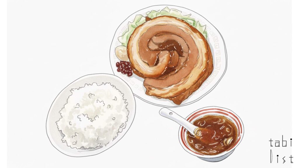 お店の顔とも言える名物料理は、豪快なビジュアルと圧倒的な満足感で人気のチャーシューエッグ定食です。肉厚に切られた大きなチャーシューと、目玉焼きを組み合わせた迫力のある定食は、多くのお客様が注文される看板メニューの一つです。このチャーシューエッグ定食に使われているチャーシューは、ブロック肉のような塊に近いほどの厚さがありながらも、じっくりと煮込まれているため、噛む必要がないほど口の中でとろけるような柔らかさです。目玉焼きは黄身がとろりとした絶妙な半熟に仕上げられており、この濃厚な黄身を厚切りチャーシューに絡めてご飯と一緒に味わうのが醍醐味です。ご飯にまでチャーシューの旨みが染み渡り、一口食べると止まらなくなるおいしさです。また、お店の方が真心を込めて調理し、明るい雰囲気の中で接客される様子も、多くのお客様から支持を集めている理由の一つと言えるでしょう。