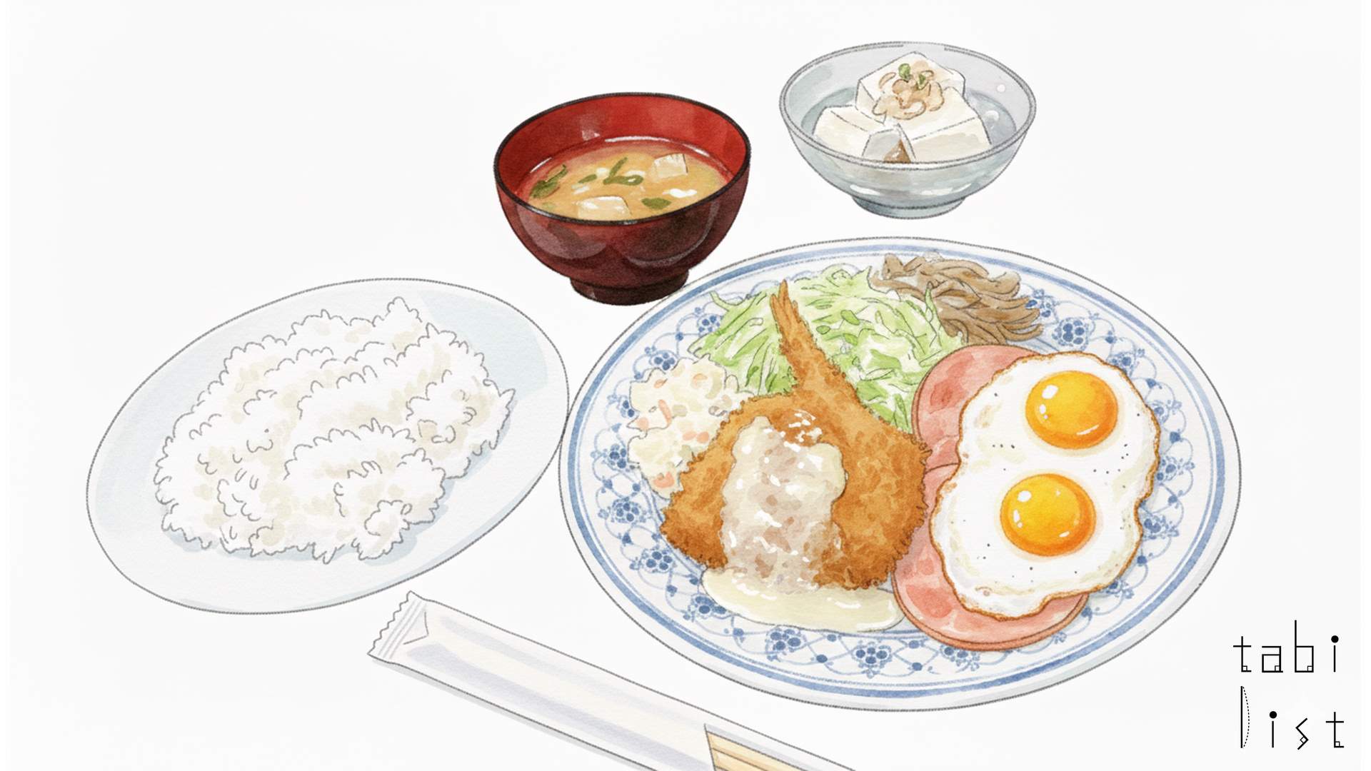 他にも、30年のシェフ歴を持つシェフがこだわり抜いたハンバーグ目玉焼きセットは、トマトを使いじっくりと煮込んだ特製ソースのまろやかな味わいが、多くの人を魅了しています。さらに、洋食店の定番であるオムライスは、とろとろオムライスのほかに、昔ながらのしっかり固めた卵で包んだタイプもあり、どちらも強火で手早く炒めた香ばしいケチャップライスがやみつきになるおいしさです。揚げ物好きには、適度な火加減で柔らかく揚げられたロースカツセットもおすすめです。キッチン長崎の定食やセットメニューは、メインの料理だけでなく、ポテトサラダやナポリタン、冷奴やお味噌汁といった和の要素が加わった副菜が充実していて、品目数の多さも嬉しいポイントです。心のこもった家庭的な素朴な味わいの副菜が、食卓を豊かに彩り、訪れる人の胃袋と心を満たしています。