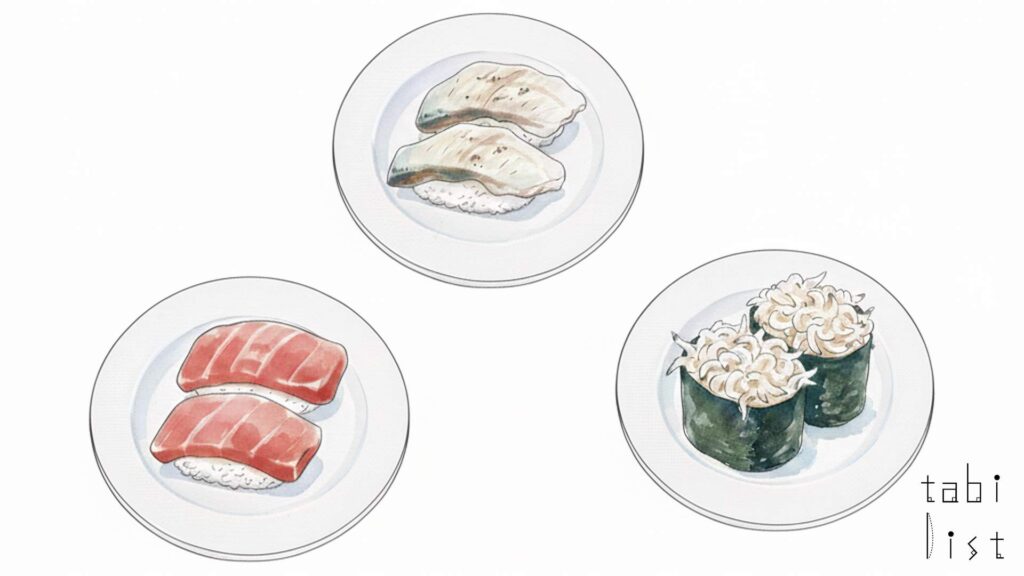 このお店の一番の特徴は、チェーン店でありながら「最寄り」の市場で素材を調達するこだわりです。黒部店では、新鮮な魚が集まる魚津(うおづ)で買い付けた旬のネタと、地元産のコシヒカリを黒部の名水で炊き上げたシャリを使っています。富山湾が「天然のいけす」と呼ばれるのは、暖流と寒流が交わる絶好の漁場だからこそで、そこで獲れた新鮮な魚と、シャリに使う水と米にまで地元の恵みを活かすことで、「黒部らしい」極上の一貫を提供しています。さらに、シャリの香りと鮮度を引き立てる天然の「酢」や、香りと甘みを増すように専用にブレンドされた金沢(大野)の「醤油」といった調味料にも全店共通のこだわりが見られ、主役である魚の旨味を最大限に引き出してくれます。注文はタッチパネルで手軽にできますし、新幹線を模したレーンで席までお寿司が運ばれてくる最新式のサービスはお子さま連れのご家族にも好評で、楽しさと職人が握る本格的な味の両方を体験できるのがうれしいですね。また、お持ち帰り用のセットメニューも充実しており、ご自宅でもお店の味を楽しめます。