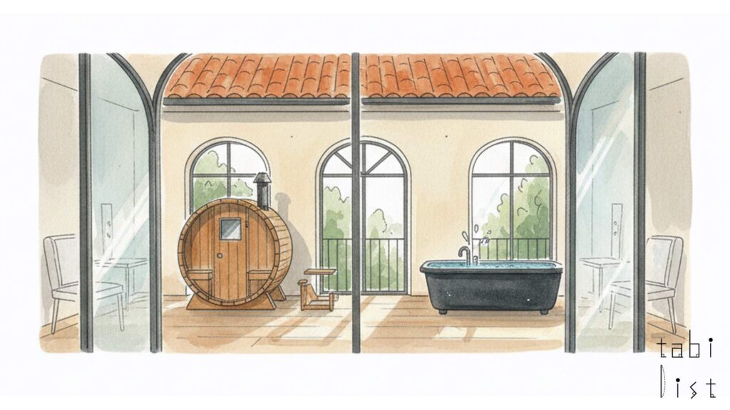 そして、この施設のもうひとつの大きな魅力が、心と体をリフレッシュするサウナ体験です。フィンランド式の本格的なサウナ設備があり、宿泊客はもちろん日帰りでも利用できます。サウナは蓄熱性に優れたコンクリートサウナのCUBERUや、完全ハンドメイドのハイパワーサウナRekkaなど、タイプが異なる空間が用意されています。さらに、お部屋の前でプライベートなサウナ体験ができるヴィラもあり、自分だけの空間で心ゆくまで「ととのう」時間を堪能できます。水風呂には那須連山から流れる最高の水質の水が使われており、深いリラックス効果をもたらします。また、カップルやファミリー、グループなど、様々なシチュエーションで利用できますので、男性専用ではありません。大自然のなかでアートに触れ、美味しい食事と極上のサウナで癒やされる、那須ユートピアは、大人も子どもも自由な心で楽しめる、理想的なリトリート施設です。秋には美野沢地区の彼岸花が美しく咲き、季節ごとのイベントも開催されるため、いつ訪れても新しい発見があります。