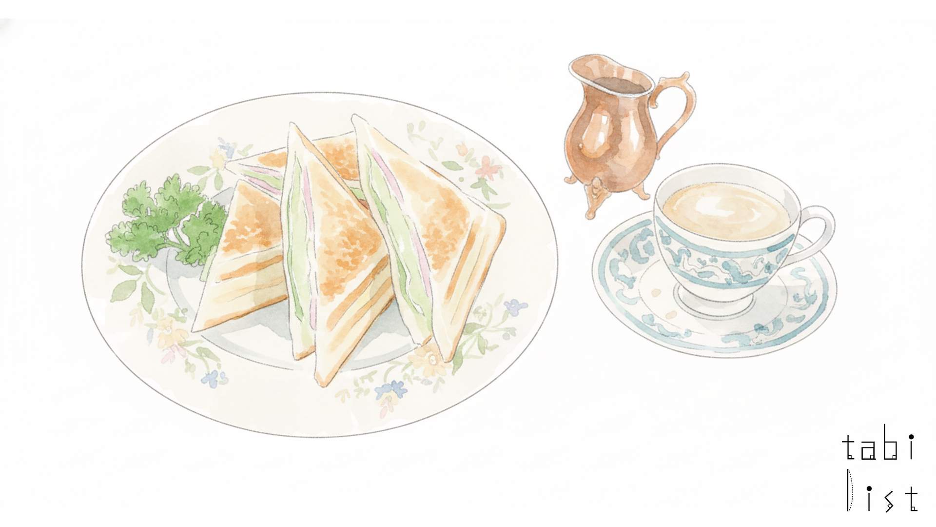 珈琲のお供として人気のメニューも豊富にそろっています。長年多くの方に親しまれている手作りのチーズケーキは、珈琲の風味を邪魔しない、ほどよい甘さと濃厚さが自慢です。また、軽食として人気のホットサンドは、注文を受けてから焼き上げられるので、出来立てアツアツをいただけます。こちらは、ハム野菜、ベーコンチーズ、ツナの3種類から選ぶことができ、ベーコンチーズのホットサンドには、シャキシャキとしたレタスも挟まれていてボリューム感もたっぷりです。そして、お店のオリジナルの冷たいドリンクとして知られているのがアンブル・ドゥ・レーヌです。これは、厳選されたコーヒーを高度な技術で抽出したエキスに、エバミルクを丁寧に浮かべたもので、「琥珀の女王」や「珈琲のナポレオン」とも呼ばれるほど、特別な一杯として愛され続けています。