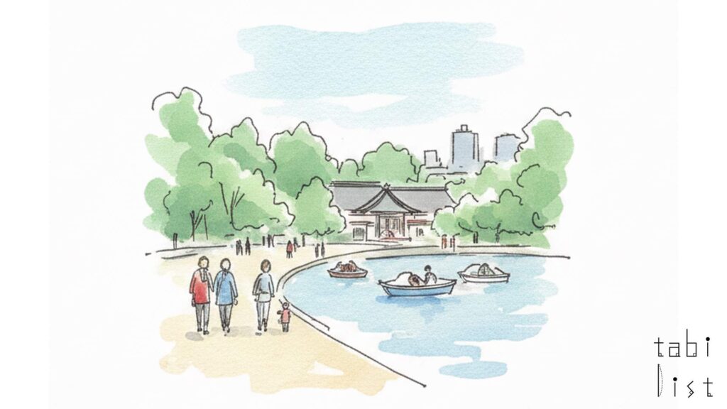 ボート場に隣接する売店には、公園散策の休憩にぴったりの軽食が揃っています。特に人気なのは、かわいい顔の焼き印が押されたお団子東京やきもちです。くるみ味噌や醤油味などがあり、散策途中に一息入れるのにちょうど良いおやつになっています。公園は、春にはソメイヨシノやヤマザクラなど約240本の桜が満開になり、池の周りが華やかなお花見スポットになります。秋には三宝寺池を中心にカエデなどの木々が美しく色づき、紅葉の名所としても知られています。広大な敷地内には、野鳥の誘致林や水辺観察園なども設けられ、カワセミなどの野鳥や水生植物の観察も楽しめます。散策の際には、リードをつけたペットのふんは必ず持ち帰る、多くの方が集まる場所での喫煙は控えるなど、利用者の皆様が気持ちよく過ごせるよう、マナーを守って自然を大切に楽しんでください。