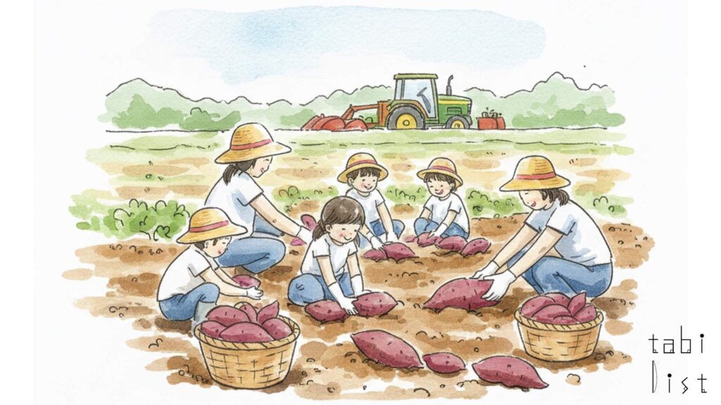 こちらの農園では、お子さんや土に触れる機会の少ない方々に向けた収穫体験イベントを積極的に開催しており、食育にも熱心に取り組んでいます。子どもたちが自分の手で野菜を掘り出し、「美味しい」と感じる体験を通じて、農業の大切さや食べ物のありがたさを伝える場にもなっています。栽培している野菜の中でも特に力を入れているのがさつまいもで、収穫後に一定の温度と湿度で貯蔵する「キュアリング処理」を施し、さらに寝かせて熟成させた熟成芋プレミアムを販売しています。このひと手間を加えることで、さつまいも本来の甘さが引き出されるそうです。ねっとりとした食感が人気の紅はるかと、なめらかな口あたりが特徴のシルクスイートという2種類のさつまいもが主軸になっています。