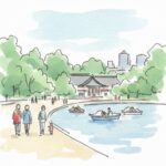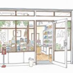 店内は、御茶ノ水の地名の由来とされる「茶の湯」をイメージしたという落ち着いたグリーンを基調としたショップカラーで構成され、訪れるお客様を温かく迎え入れてくれます。特に目を引くのが、大きな窓から望む神田川の景観を借景として取り込んだ空間デザインです。窓の外の穏やかな景色と、店内に並ぶ遊び心あふれるアートプロダクトが、独特の調和を生み出しています。また、このケンエレブンシツのロゴとメインビジュアルは、イラストレーターの竹内俊太郎氏が担当されており、グリーンとレッドを基調としたサイケデリックでポップなイラストが、お店の個性を際立たせています。