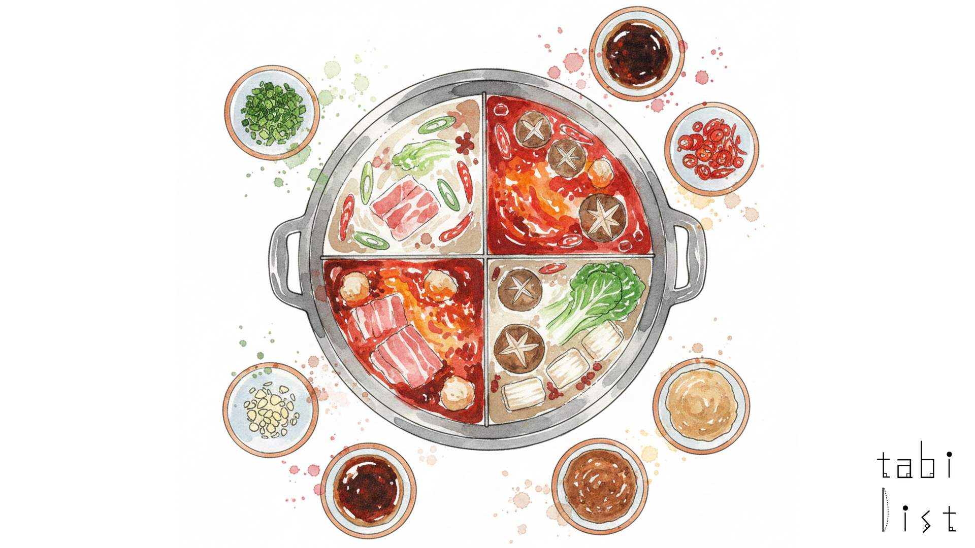 また、医食同源の考えに基づいた「鴛鴦火鍋コース」も人気を集めています。これは一つの鍋を二つに仕切り、唐辛子や山椒などの香辛料が入った刺激的な辛さの「麻辣湯」と、豆乳ベースのあっさりとした「薬膳白湯」の二種類のスープを同時に楽しめるものです。美容や健康に良いとされる数種の漢方がブレンドされており、厳選された肉や魚介、季節の有機野菜をつけて、好みのタレでいただくスタイルは、身体の芯から温まる爽快感があります。