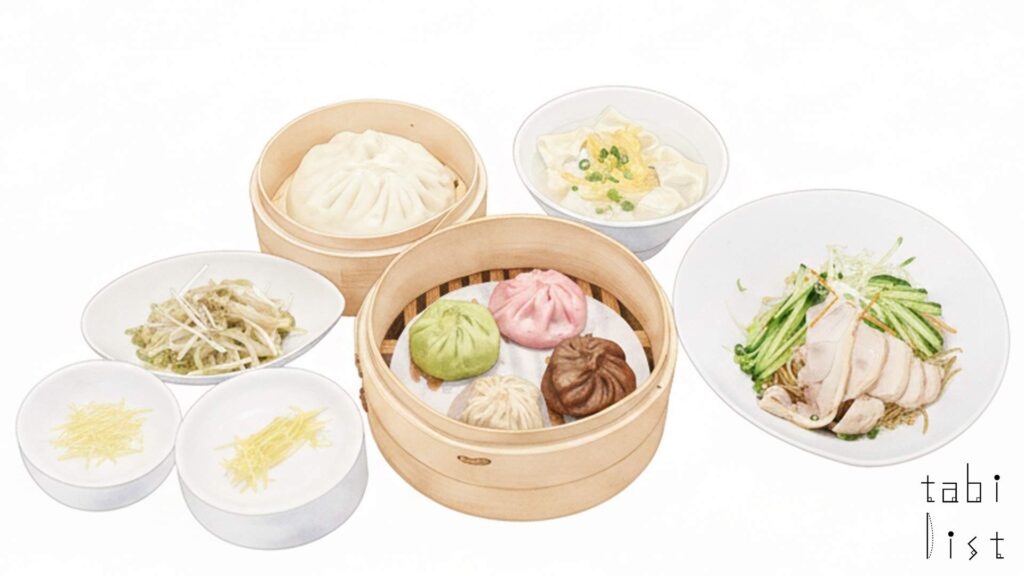 小籠包以外にも、伝統の味を守りつつ、現代のニーズに合わせたメニューが充実しています。ずっしりとボリュームのある肉汁ハンバーグまんは、ジューシーな肉の食感がしっかり楽しめる一品で、お食事としてはもちろん、テイクアウトでも親しまれています。また、副菜として楽しめるよだれ鶏は、しっかりとした辛味が食欲をそそり、小籠包の合間に挟むとまた違った味わいのコントラストを楽しめます。さらに、締めの一品におすすめしたいのが、風味豊かな香るセロリワンタンです。塩味ベースの温かいスープとセロリの爽やかな香りが心まで温めてくれるような優しい味わいです。お店の奥にある工房で大連から来た職人さんが手作りし、注文後に蒸し上げるため、いつでもできたての本格的な味を堪能できます。本場中国の味と、日本の「かわいい」文化が融合したこの場所で、特別な点心体験を心ゆくまでお楽しみください。