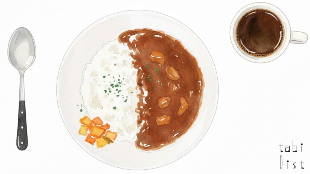もちろん、店名に「珈琲」とあるように、飲み物も格別です。店主さんが自ら挽いた豆で淹れるこだわりのコーヒーは、濃厚な苦味が特徴で、食後のデザートにもぴったりです。特に、大きめのグラスにたっぷり注がれたアイスコーヒーは、その苦味がクセになる美味しさだと評判を集めています。また、甘いものが恋しいときには、手作りのスイーツはいかがでしょうか。さっぱりとしたレアチーズケーキや、濃厚なチョコレートケーキなどのメニューがあり、食事とセットで提供されることが多いコーヒーゼリーも、ほろ苦さが人気を集める名脇役です。ハヤシライスには、スタンダードなものに加えて、半熟卵を乗せたエッグハヤシや、ウィンナーを添えたウィンナーハヤシといったバリエーションもありますので、訪れるたびに違う味を試してみるのも楽しい過ごし方です。ノスタルジックな空間で、こだわりの食事とコーヒーを心ゆくまでお楽しみください。