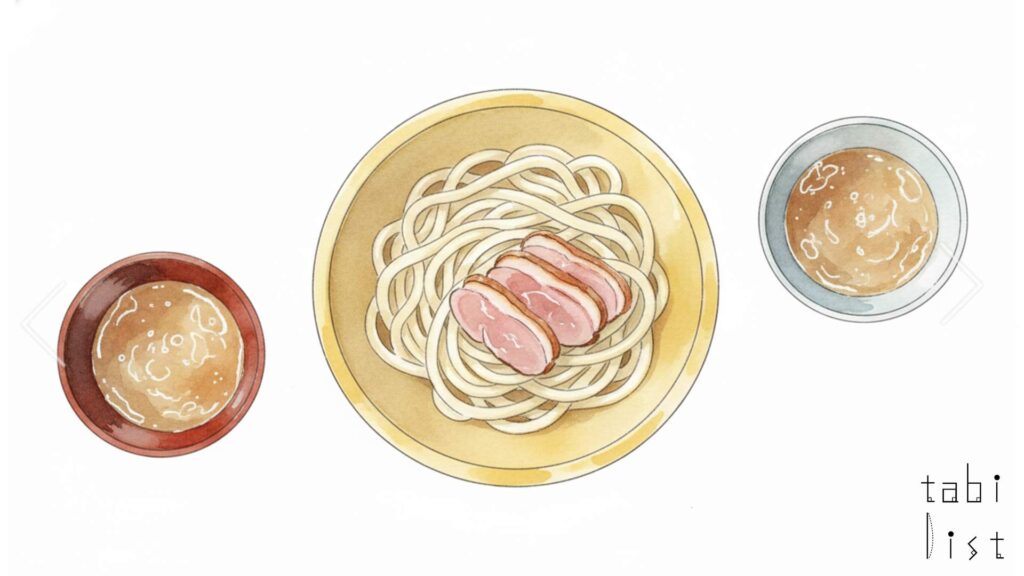 つけ汁のラインナップは、定番でありながらも深みのある味わいの「豚骨魚介」が人気です。