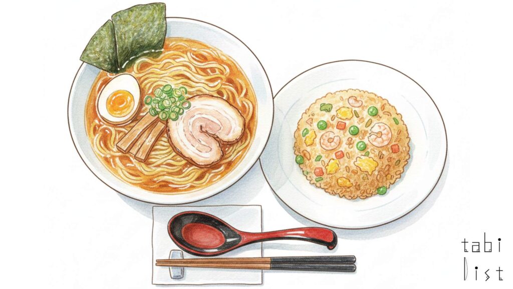 また、意外な人気を博しているのが塩バターラーメンです。真ん中にバターがちょこんと乗せられていますが、バターが溶け出す前でも、塩味のスープは物足りなさを感じさせません。バターのコクとコーンの甘さが絶妙に絡み合い、シンプルな塩ラーメンに風味豊かなアクセントを加えています。そして、ラーメンと並んで多くの方が注文するのがチャーハンです。卵、ネギ、チャーシューといったシンプルな具材で構成された、まさに「王道」と呼べる味わいで、香ばしい風味がラーメンのスープと驚くほどよく合います。がっつり食べたい方には、チャーシューがたっぷり乗ったチャーシューメンしょうゆ味もおすすめです。店名にちなんで、麺のボリュームを選べる「ホームラン」などのメニューも用意されていて、お腹の空き具合に合わせて選べるのも嬉しいところです。人気店のため、スープがなくなり次第終了となる日もありますから、訪れる時間には少し注意してください。歴史ある駅でいただく素朴で心温まる一杯は、きっと旅の良い思い出になりますよ。