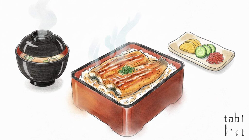 メニューは潔いほどシンプルで、お店のこだわりが詰まったうなぎ料理を楽しめます。お重で提供される定番のうな重は、鰻の旨味と香ばしさを存分に堪能できる逸品です。また、うなぎ本来の味をシンプルに味わいたい方には、さっぱりとした白焼定食も大変人気があります。こちらは、焼き加減の良さが際立ち、わさび醤油などでいただくと、鰻の繊細な風味と香ばしい皮の食感がより一層引き立ちます。さらに、一品料理として提供される肝焼きも、来店客の多くが注文する人気のメニューです。混雑時には売り切れてしまうこともあるほどの人気ぶりで、香ばしく焼き上げられた肝を肴に、鰻の焼き上がりを待つのも粋な楽しみ方と言えるでしょう。