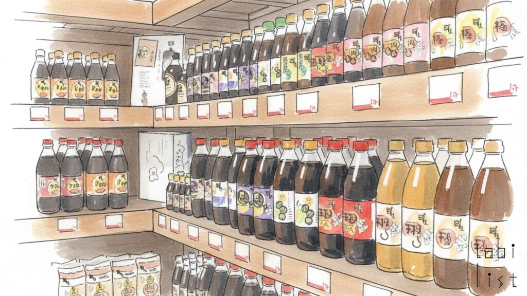 数ある商品の中でも、まず試していただきたいのは、創業当時のままの杉樽を使って長期熟成させたという杉樽仕込醤油です。国内産の有機大豆と有機小麦が用いられており、長い時間をかけて樽の中でゆっくりと育まれた芳醇な香りとまろやかな旨みが特徴で、地域の食卓で重宝されています。また、人気の柚子ポン酢は、四国で収穫された柚子の果汁を贅沢に使い、濃口醤油と合わせて仕立てられています。醤油屋ならではの深いコクが、柚子の爽やかな風味を包み込み、水炊きや焼き魚などを上品な味わいへと引き立てます。さらに、愛媛の特産品として親しまれている、おかず味噌「しょうゆの実」に愛媛県産のちりめんを混ぜ込んだちりめんひしおも、隠れた人気を誇る一品です。ご飯のお供やお酒の肴にぴったりで、地域の味として親しまれてきました。これらの調味料は、毎日の献立を豊かに彩る、地域の宝のような存在なのです。