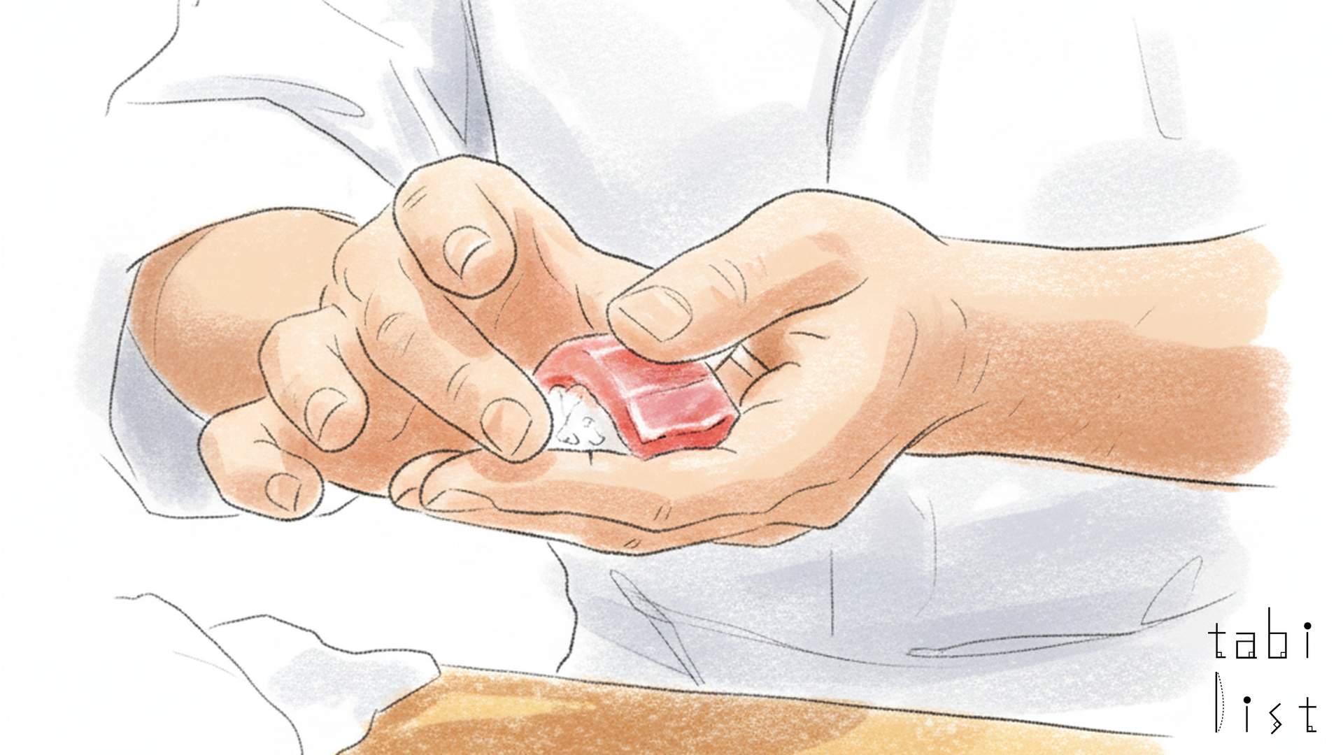 小松 弥助の最大の魅力は、親方である森田一夫氏が醸し出す温かな雰囲気と、その卓越した技から生まれる独自の鮨にあります。 鮨を握る一連の所作は「森田劇場」と呼ばれるほど、お客様を楽しませ、幸せにする工夫が凝らされています。 また、森田氏は長年の功績が認められ、2019年には厚生労働省によって「現代の名工」に選出されています。 握りにおいて森田氏が大切にしているのは、「一手握り」とも言われる手数の少なさです。 これは、ネタやシャリに極力ストレスを与えず、素材の良さを最大限に引き出すための工夫です。 そのため、シャリは空気をたっぷり含んでいて、口に入れた瞬間にふわっと解けるような柔らかさが特徴で、酸味が穏やかな人肌の温度で提供されます。 この独自のスタイルは、江戸前の伝統とは異なる、森田氏ならではのアプローチとして人々の胃袋と心を掴んでいます。
