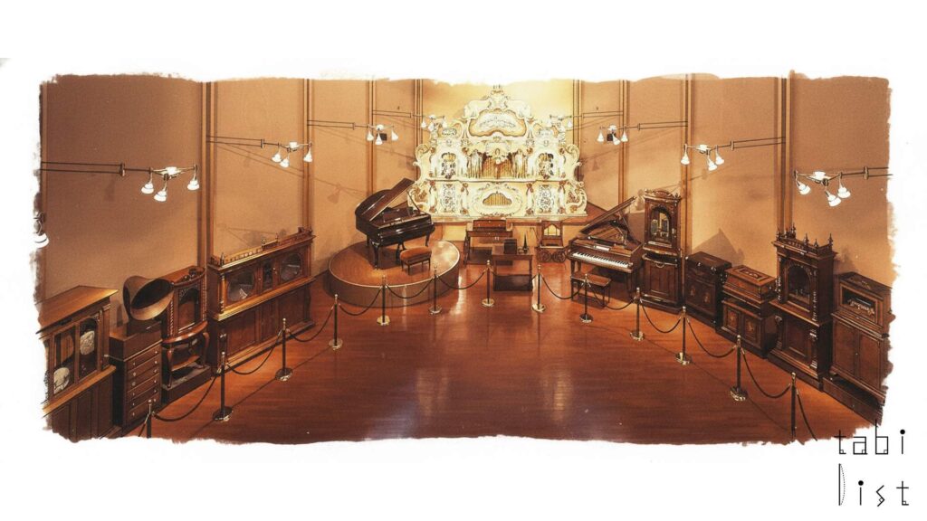 館内には、19世紀末から20世紀初頭にかけてヨーロッパなどで製作されたアンティークオルゴールや、自動演奏ピアノ、自動演奏オルガン、オーケストリオンなど、約70点もの貴重な自動演奏楽器が展示されています。これらの楽器はただ展示されているだけでなく、解説員による約20分から30分間の実演会で、実際にその美しい音色を聴くことができるのが大きな特徴です。100年以上前の楽器が奏でる優雅な音色は、高さ6mの吹き抜けになっている素晴らしい音響空間に響き渡り、非日常的な感動を与えてくれます。実演会では、解説員の方がオルゴールの歴史や、内部の仕組みを丁寧に説明してくださるので、音色だけでなく、オルゴールがどのようにして生まれたのか、どのように使われていたのかといった文化的な背景まで深く知ることができます。実演される楽器や内容は時間によって変わりますが、当日中なら再入館が可能なので、何度でも異なる音色を味わうことができるのも嬉しい点です。