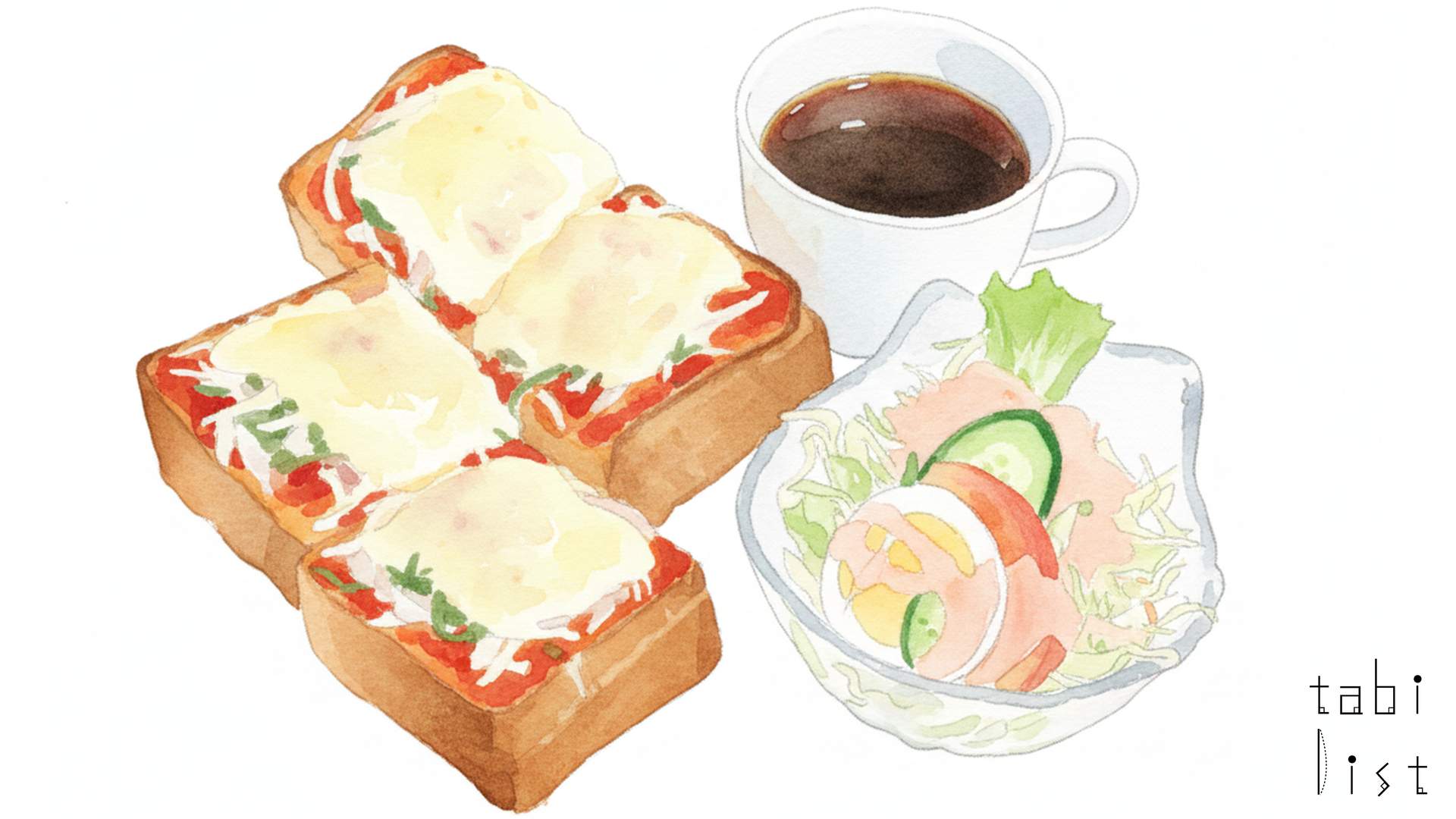 お食事や軽食にも定評があり、朝早くから楽しめるモーニングサービスも人気を集めています。中でもおすすめしたいのは、知る人ぞ知る名物メニューの「小倉あんトースト」です。こんがりと焼かれたトーストの間には、ふっくらと炊き上げられた粒あんと、なめらかな口当たりのクリームがたっぷりサンドされています。甘さが控えめで上品な味わいのため、「エビアンのブレンドコーヒー」と合わせて楽しむ方も多くいらっしゃいます。また、週替わりで内容が変わるモーニングセットのパンも、朝の楽しみとして好評をいただいています。