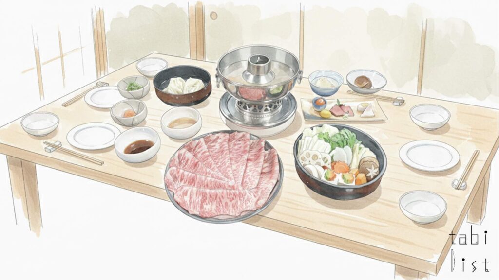 牛肉のプロが選び抜いた和牛を贅沢に味わえるコースは、すき焼のほかにも複数用意されています。上質な国産黒毛和牛とこだわりのスープを楽しむしゃぶしゃぶコースや、米沢牛の希少部位であるシャトーブリアンなど、厳選した部位のステーキを味わうビフテキコース、オイル焼コースなども人気です。他にも、季節の日本料理を織り交ぜたコースもあり、様々な形で和牛の美味しさを満喫できます。