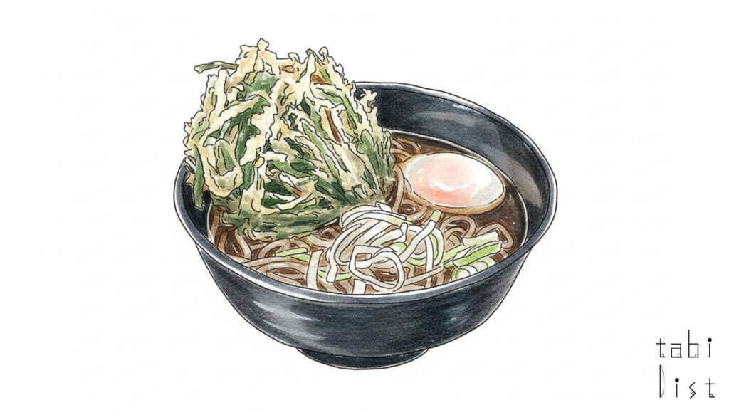 たくさんあるメニューの中でも、特に人気を集めているのが、豪快な具材が楽しめるゲソ天そばです。こちらのゲソ天は、大きめにカットされたゲソがゴロゴロと入っており、その厚みとボリュームに驚く方も多いと言います。衣はサクッと、中のゲソはコリコリとした心地よい歯ごたえがあり、特製のつゆが染みた美味しさは、そばのコシと相まって絶妙なバランスを生み出します。また、現代的な要素を取り入れた「ハイブリッド」な一杯として話題なのが、ラー油肉そばです。甘じょっぱい豚肉の上にラー油を効かせた特製つゆを使い、パンチのある味わいが人気です。寒い時期には温かいラー油肉そばで体の中から温まり、暑い時期には冷たい冷やしラー油肉そばで、よりムギュッとした麺の食感と辛味・酸味のバランスを楽しむのがおすすめです。