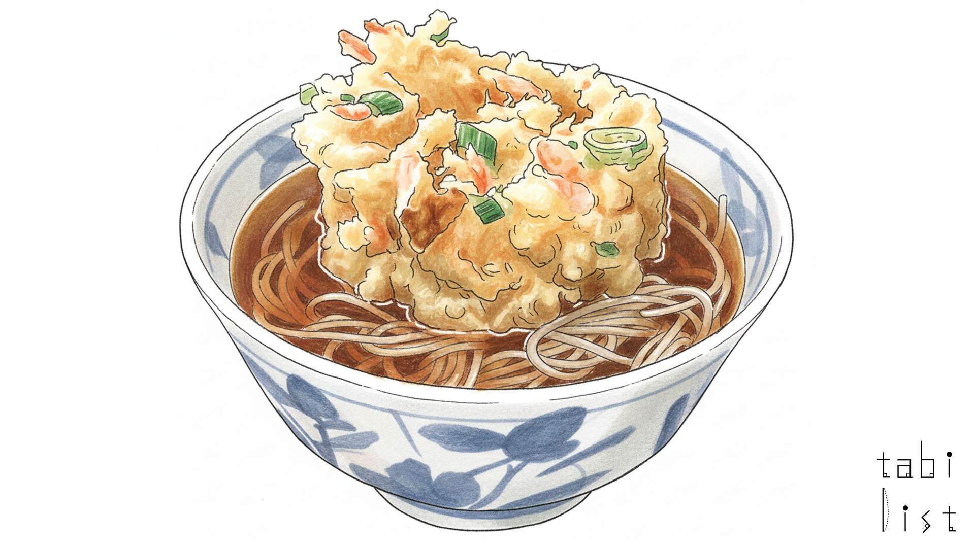 お店の看板メニューとして、多くのお客さんが注文するのがかき揚げそばです。その迫力ある姿は、丼から大きく突き出し、まるで海に浮かぶ大陸のようだとも表現されるほどのボリュームです。厚さ5cmほどもある分厚いかき揚げは、玉ねぎ、にんじん、ねぎといった具材がぎっしりと詰まっていて、食べ応えも抜群です。玉ねぎは甘く、人参や長ねぎはしゃっきりとした歯ごたえが残り、大きな具材の旨味がつゆ全体に広がります。また、サクサクの食感を最後まで楽しみたい方には、天ぷらを別皿で提供してもらうこともできるそうですよ。つゆは、しっかりとかえしが効いていながらも、出汁の優しさが感じられる奥深い味わいです。そばは細麺で、なめらかな麺肌がツルツルとした喉越しを生み出しています。