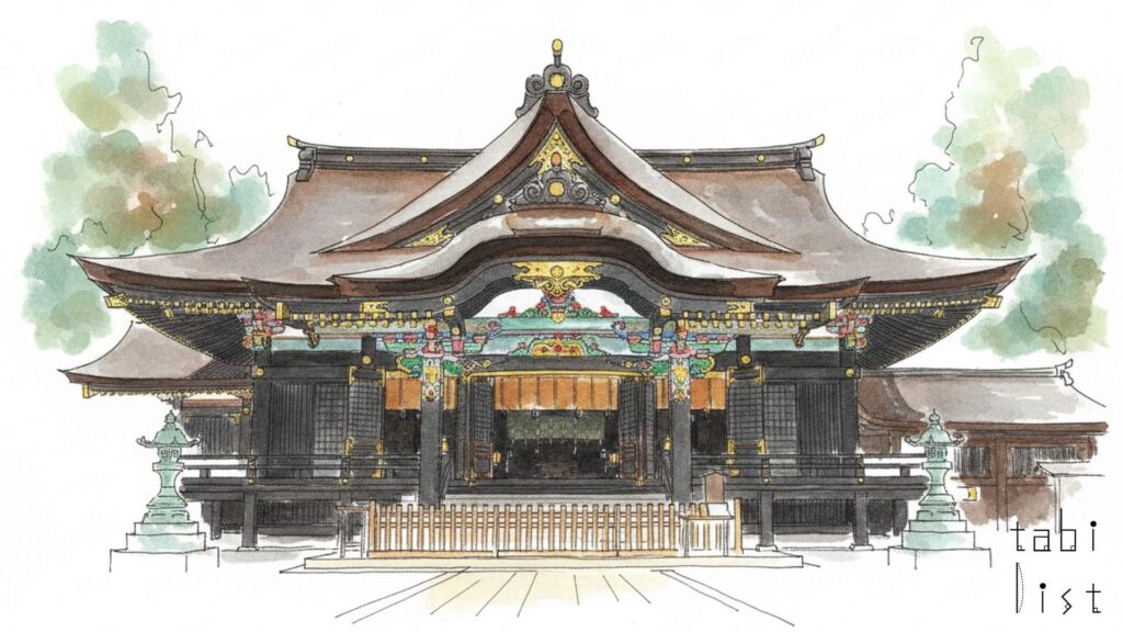 ご祭神は、日本書紀の国譲りの神話にも登場する経津主大神(ふつぬしのおおかみ)で、刀剣の威力を神格化した武神・軍神として古くから信仰を集めてきました。そのことから、主に勝運、武道上達、交通安全、災難除け、そして縁結びにご利益があるといわれています。境内にある社殿は、元禄13年(1700年)に江戸幕府第5代将軍の徳川綱吉公によって造営されたもので、本殿と楼門が国の重要文化財に指定されています。特に、鮮やかな朱塗りの楼門には、日露戦争で活躍した海軍大将の東郷平八郎が揮毫した額が掲げられており、勝負の神様としての威厳を感じさせます。