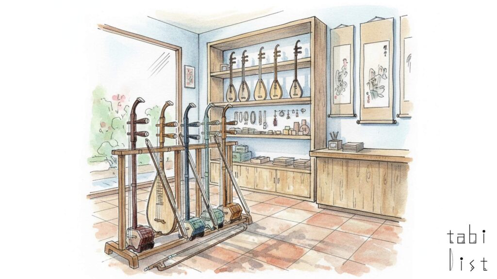 このお店が何よりも大切にしているのは、「たくさんの二胡を思う存分弾き比べて、納得のいく一本を選んでいただきたい」という強い思いです。一般的な楽器店では、二胡のように個体差が大きい楽器をじっくりと選び、試奏するのは難しい場合もありますが、龍胡堂 東京店では、その思いを体現するために、充実した展示と試奏環境を整えています。また、楽器の販売だけでなく、二胡を長く最高の状態で使い続けるためのお手伝いにも力を入れています。他のお店で購入した二胡であっても、修理やメンテナンスを受け付けている点が、二胡愛好家にとって心強いサービスとなっています。さらに、二胡の演奏技術を高めたい方のために二胡教室を開いているほか、弦の交換といったメンテナンス技術を学べるワークショップや、ミニコンサートなども開催され、二胡を学ぶ方や楽しむ方々の交流の場を提供しています。