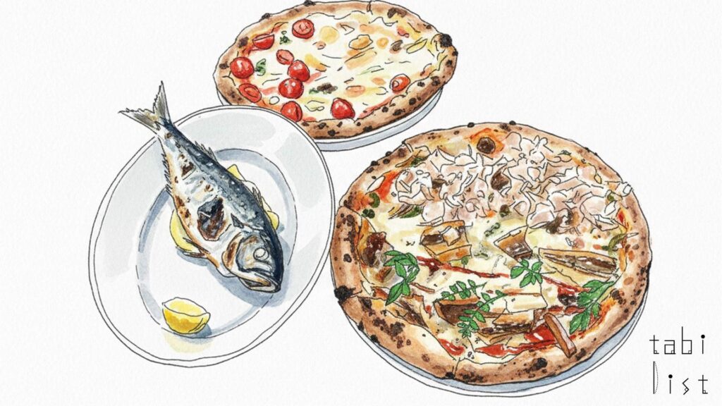 トトトでまず召し上がっていただきたいのが、もちろん自慢のピザです。生地にはオーナーの出身地である鳥取県の霊峰・大山で作られた香り豊かな『大山こむぎ』と全粒粉をブレンドして使われています。この特別な生地を専用の窯で香ばしく焼き上げることで、風味豊かな食感が生まれます。ピザメニューは定番から旬の魚介や野菜を使った季節替わりのものまで常時10種類以上が並び、選ぶ楽しみがあります。迷ってしまう方には、2種類の味を楽しめるハーフ&ハーフでの注文もできますので、ぜひお試しください。