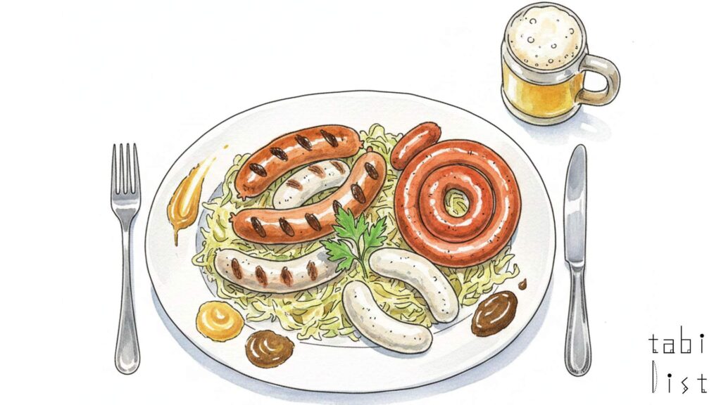 豪快でダイナミックな肉料理も南チロル料理の大きな魅力です。例えば、ハクセンは皮付き豚すね肉をローストしたボリューム満点の一品で、皮がパリパリになるまで香ばしく焼き上げられており、バイエルン風ビールソースとの相性が抜群です。また、シェフが考案したスペシャリテの一つにシュマーレンがあります。これはデザートのパンケーキとは異なる甘くない南チロル風のオムレツで、スフレのようにふわふわに仕上げた卵の中に、とろけるチーズが入った驚きの食感と味わいです。このほかにも、南チロルの定番煮込み料理であるグーラッシュなど、力強い山岳料理の真髄を楽しめます。お料理に合わせて、南チロル産のものを中心に豊富に取り揃えられたワインやビールを味わうことも、このレストランならではの特別な楽しみ方です。シャルキュトリーや濃厚なチョコレートテリーヌなどの自家製商品は、テイクアウトやお土産としてもおすすめです。