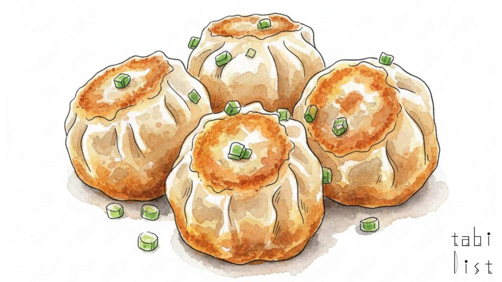 大山生煎店の生煎の魅力は、何と言ってもその食感とジューシーな肉汁、そして皮のこだわりから生まれるバランスの良さにあります。まず、食感については、蒸し焼きにする大きな鉄鍋によって、底の部分はカリッと香ばしく焼き上げられ、上部はふっくらモチモチとした弾力のある皮に仕上がっています。この食感のコントラストは、生煎の醍醐味です。皮の素材にもこだわりがあり、日清製粉の最高級の小麦粉を厳選して使用することで、モチモチ感とカリッと感の両立を実現していると言われています。そして、この皮の中にたっぷりと詰まっているのが、ジューシーな肉あんと、熱々のスープです。肉あんは旨味が凝縮されており、噛むと中からあふれ出すスープと相まって、濃厚な味わいが口いっぱいに広がります。このスープは大変熱いので、最初に皮を少し破って中のスープをゆっくりと吸ってから召し上がるのがおすすめです。店内は立ち食いスタイルが基本ですが、お昼時には簡易的な椅子が用意されることもあり、ちょっとした休憩やランチにも気軽に利用できるのが嬉しいところです。