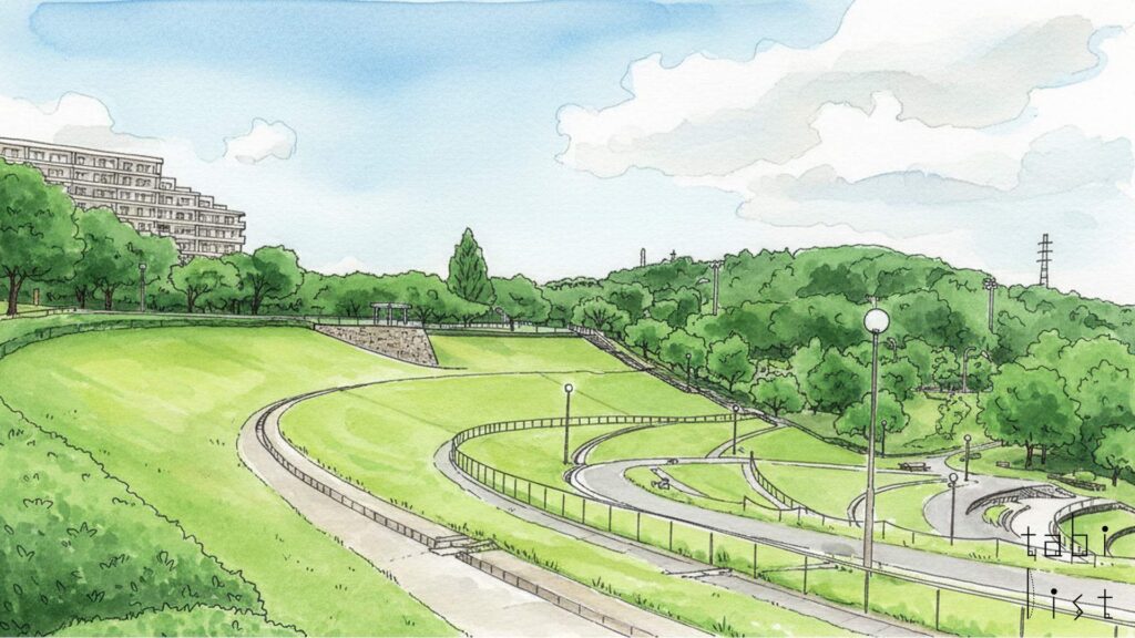 東京都稲城市の西側に広がる若葉台公園は、京王相模原線若葉台駅から徒歩でおよそ10分という便利な場所にある、面積約9.8ヘクタールの広大な敷地を持つ市民の憩いの場です。稲城市の公式情報によると、この公園は単なるレクリエーションの場としてだけでなく、災害時に対応できる防災機能を備えた公園として整備されているのが大きな特徴となっています。主要な園路にはソーラー照明が設置されているため、もしもの停電時にも避難路を照らし、安全な誘導を可能にする役割を担っています。