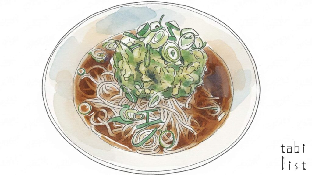 また、もう一つの人気メニューである春菊天そばは、ファンも多い一品として知られています。