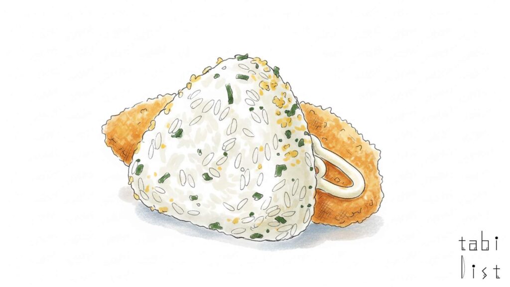 このお店を全国的に有名にしたのが、石垣島のソウルフードとして知られるオニササです。もともとはお店の方が考案したメニューではなく、買い出しに来ていた地元の高校生たちが、限られたお小遣いの中で手軽にお腹を満たそうと編み出した食べ方でした。ビニール袋の中に、揚げたてのササミフライとおにぎりを一緒に入れ、袋の上から手でぎゅっと握って一体化させるという、とても合理的でユニークなスタイルです。この飾らない美味しさが口コミで広がり、今では島を代表する名物として、多くのメディアやガイドブックでも紹介されるようになりました。