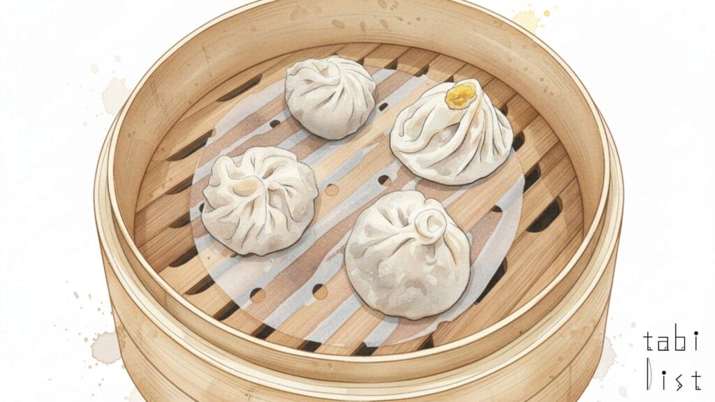 このお店の看板メニューである小籠包は、その製法に並々ならぬこだわりが詰まっています。スープを包む「皮」には、パンのように膨らませる目的ではなく、粘りや伸展性を与える天然酵母の「老麺(ラオメン)」を用いています。この老麺で仕立てた極薄の皮は、破れにくく、蒸し上がった後もしっとりともちもちとした食感になり、口溶けの良さも両立させているのです。さらに、小籠包の命ともいえるスープは、化学調味料や香料、ゼラチンは一切使わず、豚皮や鶏骨から丁寧に引いた一番出汁をベースに、豚皮由来の煮凝り(肉皮凍)を使って作られています。ゼラチンに頼らず、素材の力だけで澄みきったスープを極薄の皮で丁寧に手包みし、蒸籠を開けた瞬間に“完成”する理想的な味わいを追求しているのですよ。この独自の「澄んだスープ」の思想が、タレなしでも美味しい清らかな旨味を生み出しています。