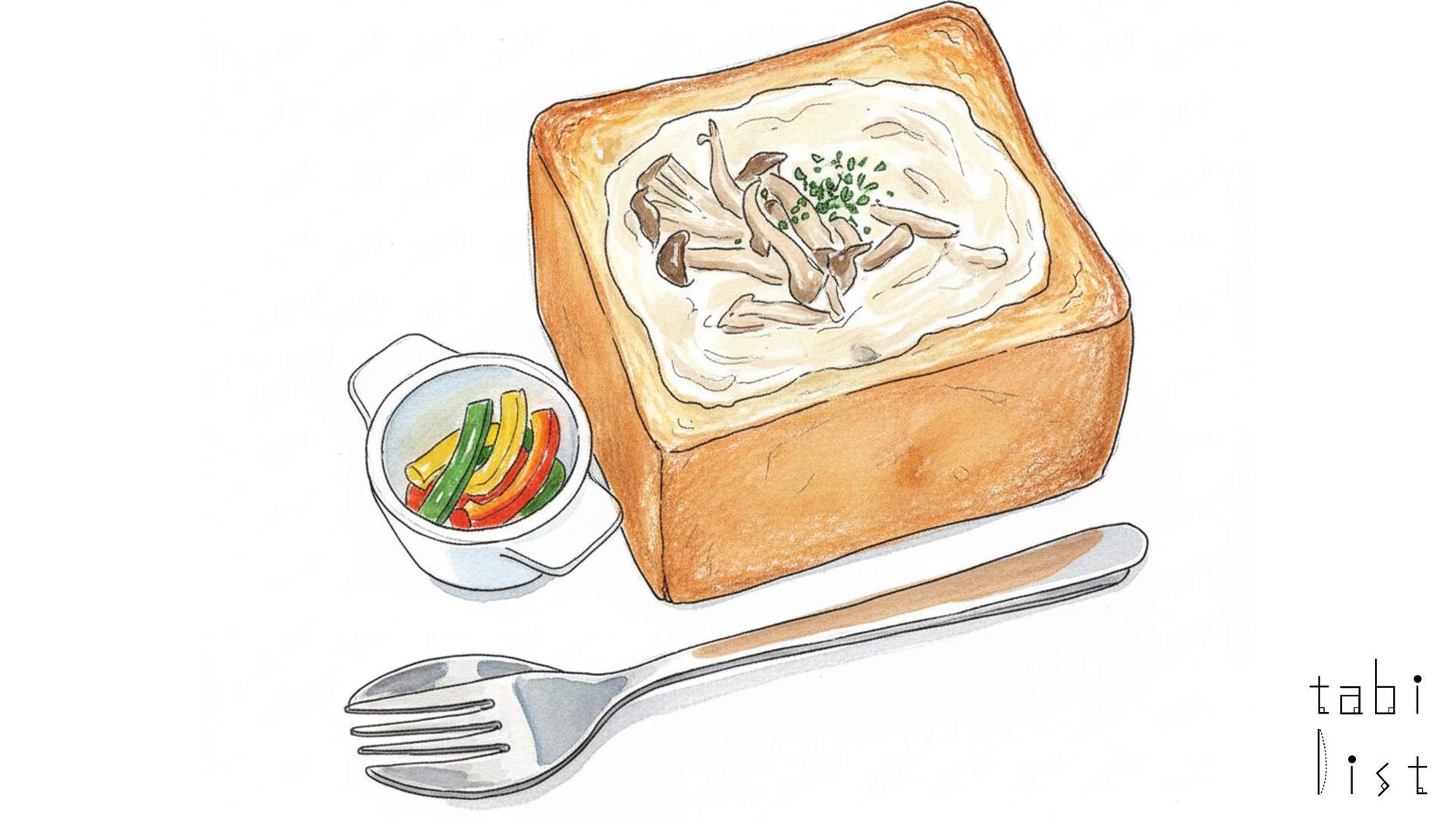 食事のメニューは、洋食から和の甘味まで幅広くそろっています。特に人気を集めているのが、日光の恵みを堪能できるお食事メニューです。外はサクサク、中はふんわりとしたロイヤルブレッドの中に、濃厚なクラムチャウダーがたっぷり入った**クラムチャウダーinロイヤルブレッド**は、旅の途中のランチやブランチに最適なボリュームのある一品です。このクラムチャウダーには、日光の名物である**湯波**が入っており、地元の食材を活かしたオリジナルの味わいが特徴で、パンと絶妙にマッチします。