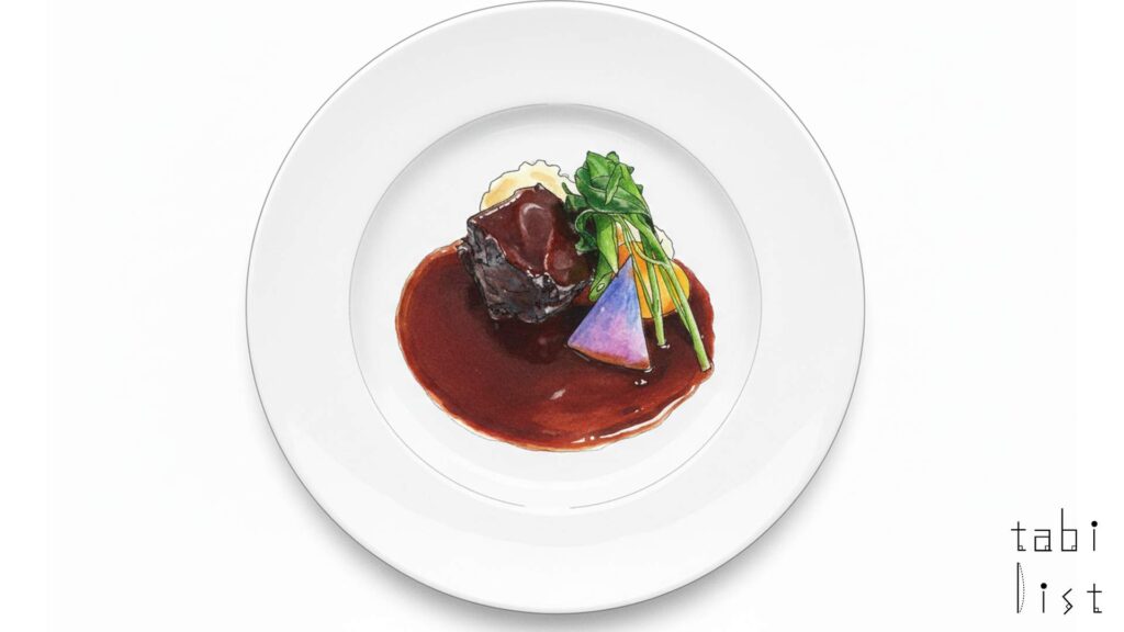 メインディッシュでは、地元神奈川の恵みを堪能できる肉料理が人気を集めています。例えば、風味豊かで質の良い湘南豚のローストは、お店の素材へのこだわりが凝縮された一品です。また、特別な日には、地元の最高級ブランド牛である葉山牛のステーキに、豊かな香りのトリュフソースを添えた贅沢な一皿も登場することがあります。これらのお肉料理に添えられる鎌倉野菜のローストや、その日一番美味しい野菜を使った鎌倉かぶのポタージュなどは、豊かな土壌と海風に恵まれた鎌倉の旬の味わいを堪能できる、このお店ならではの名物です。ワインのラインナップも豊富で、本場フランスの味を心ゆくまで楽しめる、大人のための隠れ家的なお店です。