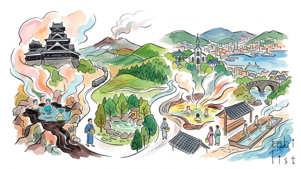温泉に加えて、雲仙温泉の周辺ではさまざまな魅力が訪れる人々を待っています。雲仙温泉は標高およそ700メートルに位置する高原リゾートで、豊かな自然に囲まれた場所です。冬の時期には平地より気温が5℃ほど低くなるため、暖かい服装でお出かけください。12月上旬には初雪が降ることもあり、寒波の際には積雪もあるので、お車でお越しになる場合は特に注意が必要になります。