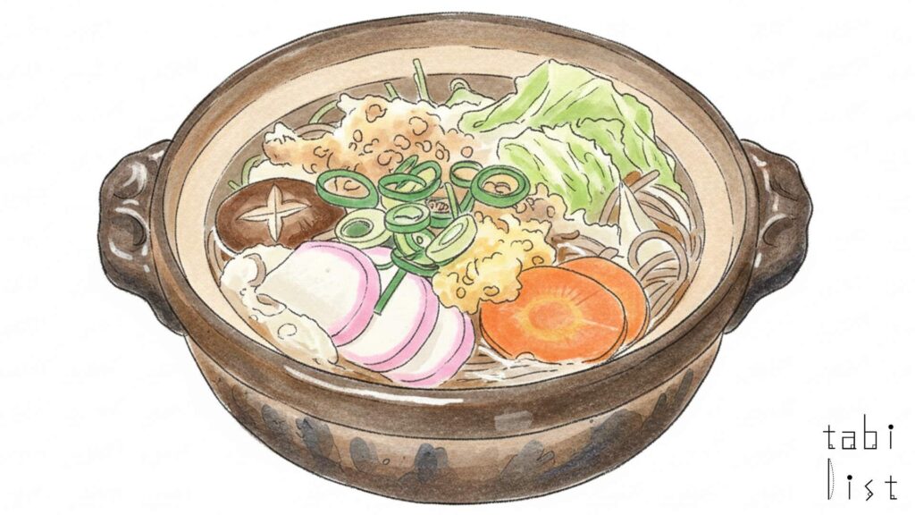 - 鍋焼き 1200円(麺はうどん・そば・黄そばから選べる)