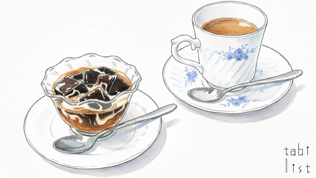 また、通常のメニュー以外にも、お店ならではの個性が光る逸品が揃っています。深煎りの豆を使い、濃厚な甘さの練乳と合わせたベトナムコーヒーは、コーヒーとデザートの両方を満たしてくれるような贅沢な一杯です。さらに、コーヒーへのこだわりが生きているカフェオレも評判です。一般的なカフェオレとは異なり、あくまでコーヒーを主役としてその重厚な存在感を漂わせるように作られており、奥深いコクとミルクの優しさが融合しています。サイドメニューで注目したいのが、もっちりとした食感が特徴の自家製コーヒーゼリーです。本格的なコーヒーの味がしっかりと感じられる仕上がりで、コーヒー好きにはたまらないと好評です。コーヒー豆の種類や焙煎度合いについて、オーナーが親身になってアドバイスをくれるので、好みの豆を見つける楽しみもこのお店を訪れる醍醐味と言えるでしょう。