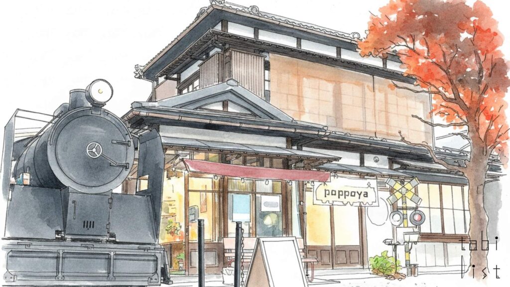 宿 ぽっぽやの大きな特徴は、オーナー様の鉄道への深い愛情と、手作りによる驚きのクオリティです。お子様が「退屈だ」と言わないようにと、単なる寝室ではない、ワクワクするような空間を目指して誕生しました。施設の中には、かつて寝台特急などを牽引していた電気機関車EF66の実物大モックアップや、ブルートレイン客車の運転室に入れるコーナーまで用意されていて、鉄道ファンはもちろん、大人の方も童心に帰って楽しめます。敷地内の至るところに本物のナンバープレートや信号機、レトロな切符を切る改札機など、鉄道アイテムがちりばめられており、細部までこだわりを感じます。また、宿泊棟とは別のカフェエリアでは、大きな窓から富士急行線の電車が間近を通過する様子をゆったりと眺めることができ、その風景も旅の素敵な思い出になるでしょう。