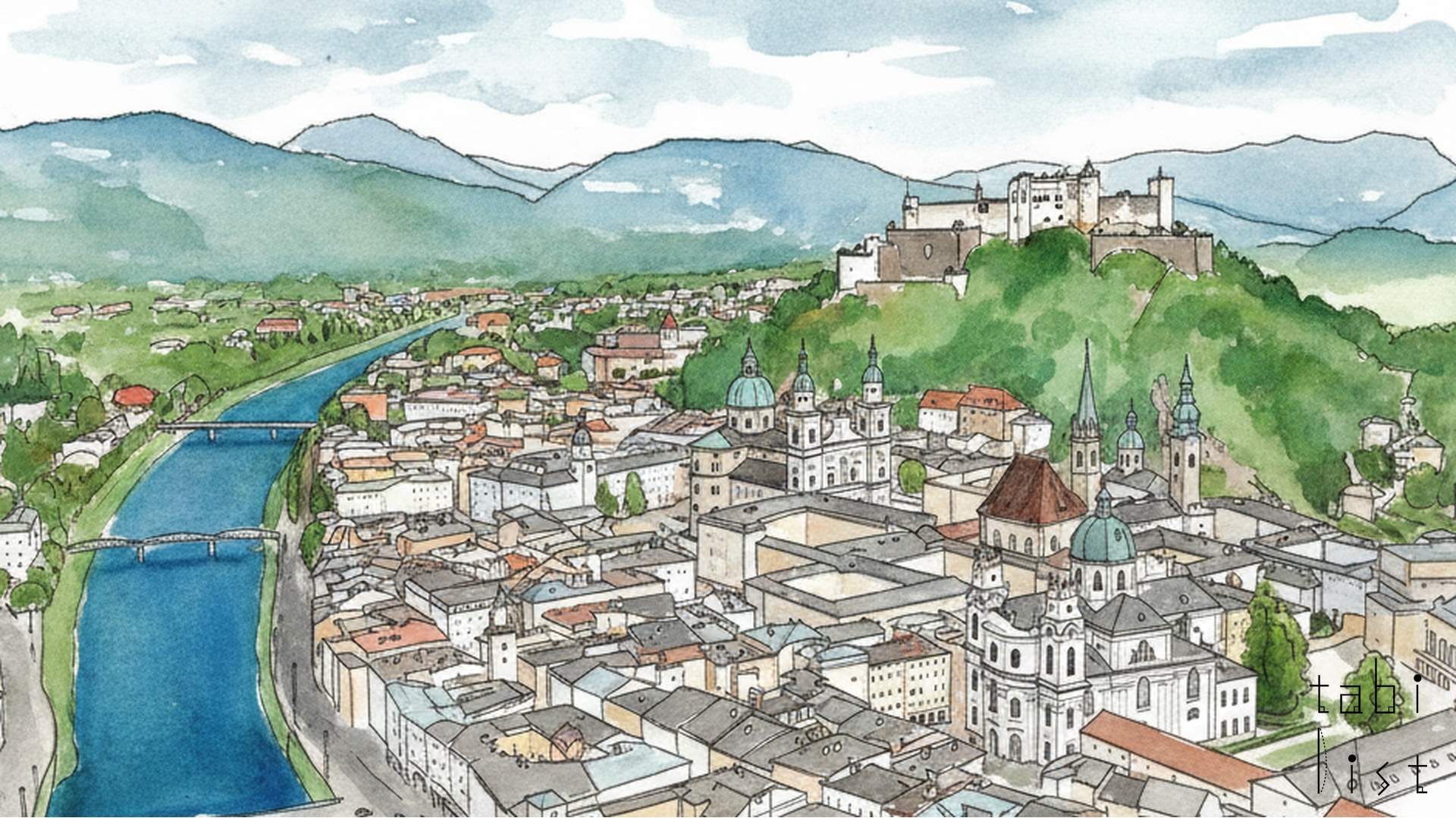 オーストリアの中部に位置する、美しい山々に囲まれた古都の風景が広がる場所です。ザルツブルク市街の歴史地区は、紀元前から岩塩の採掘と交易によって大きな富を築き、1996年にユネスコの世界遺産に登録されました。ザルツブルクという名前には「塩の城」という意味があり、その名の通り、かつて「白い金」と呼ばれた塩がこの街に華やかな繁栄をもたらしました。中世から19世紀にかけて、宗教と政治の両方の権力を持っていた大司教が治める独立した司教領として発展したため、街のあちこちに豪華なバロック様式の建物が並んでいます。アルプスの麓に広がる自然と、イタリアの建築様式を取り入れた美しい街並みが調和する様子は、北のローマとも称えられています。