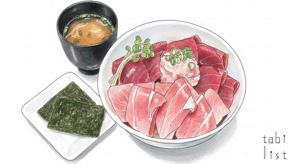 お店の看板メニューは、その名も「まぐシャリ丼」です。この丼は、サイズが「小」から「極」まで用意されており、お好みに合わせて選べます。特に「まぐシャリ丼 極」は、400グラムの赤酢シャリの上に、190グラムもの天然本鮪が豪快に盛り付けられた一品で、様々な部位のまぐろを心ゆくまで堪能できると評判です。丼には、特製の煮切り醤油がまぐろにほどよく絡めてあり、まぐろ本来の美味しさを存分に引き出してくれます。