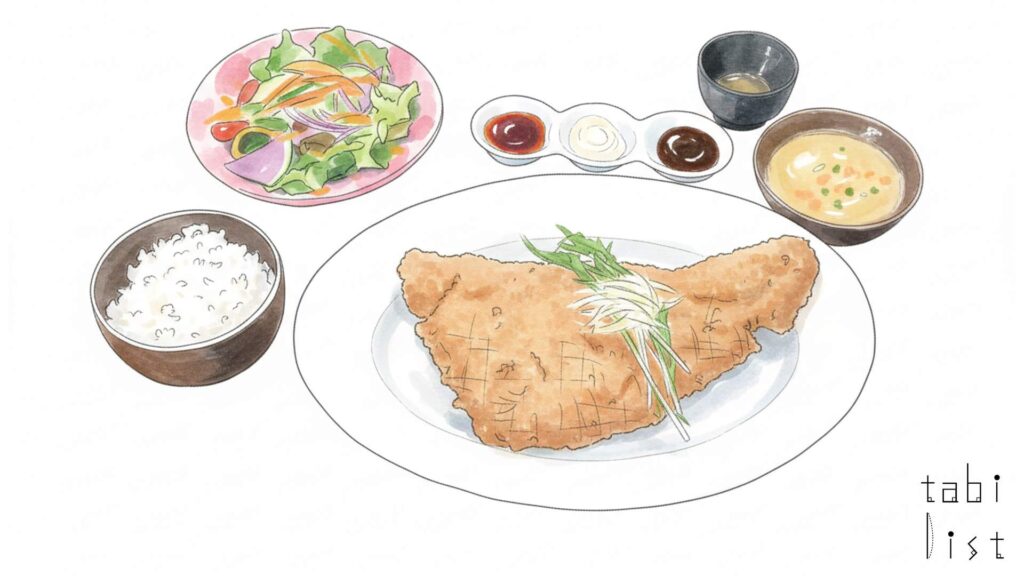 お店の看板メニューは、金目鯛をふんだんに使ったオリジナルのお料理です。特に「金目重」と「金カツ」は、訪れる多くのお客様に愛されています。「金目重」は、お重の蓋を開ける瞬間からわくわくするような一品で、大きな金目鯛がナスやニンジン、エリンギなどのお野菜と一緒に丁寧に煮付けられています。タレが染み込んだご飯も絶品で、和と洋の味わいを一度に楽しめるのが魅力です。また、秘伝の熟成ダレだけでなく、自家製レフォールソースや山椒で味の変化を楽しむこともできるのですよ。もう一つの人気メニュー「金カツ」は、サクサクとした衣の中に、ジューシーな金目鯛が包まれているのが特徴です。こちらは3種類のソースが添えられており、色々な味わいを試しながら最後まで美味しくいただける工夫が凝らされています。金目鯛は、うっすらと桜色がかった美しい身で、華やかな甘みのある脂が特徴の上品な味わいです。身が柔らかく小骨も少ないため、小さなお子様からご年配の方まで、皆様で安心して美味しさを堪能できる食材です。