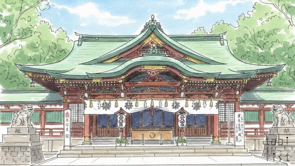 大宮八幡宮を訪れた際には、季節ごとの行事にも注目してください。毎年7月1日から15日には、平安時代の宮中の七夕飾りを再現した「乞巧奠飾り(きっこうでんかざり)」が展示され、当時の雅やかな文化に触れることができます。 また、緑豊かな境内をゆっくりと散策すると、約2千年前のハスの実から発芽した「大賀蓮」を見ることもできるなど、悠久の時の流れを感じられます。 ご参拝の後は、境内の「清涼殿」にあるティーラウンジで一息つくのも良いでしょう。こちらでは、厄除けの願いが込められた「厄除まんじゅう」や、福を招くといわれる「へそ福餅」、そして「東京のへそ」にちなんだ「へそ福万」などのお菓子が用意されています。 特に「へそ福万」は、御神水で淹れたお茶と一緒にいただくと、さらに良い福に恵まれるといわれています。