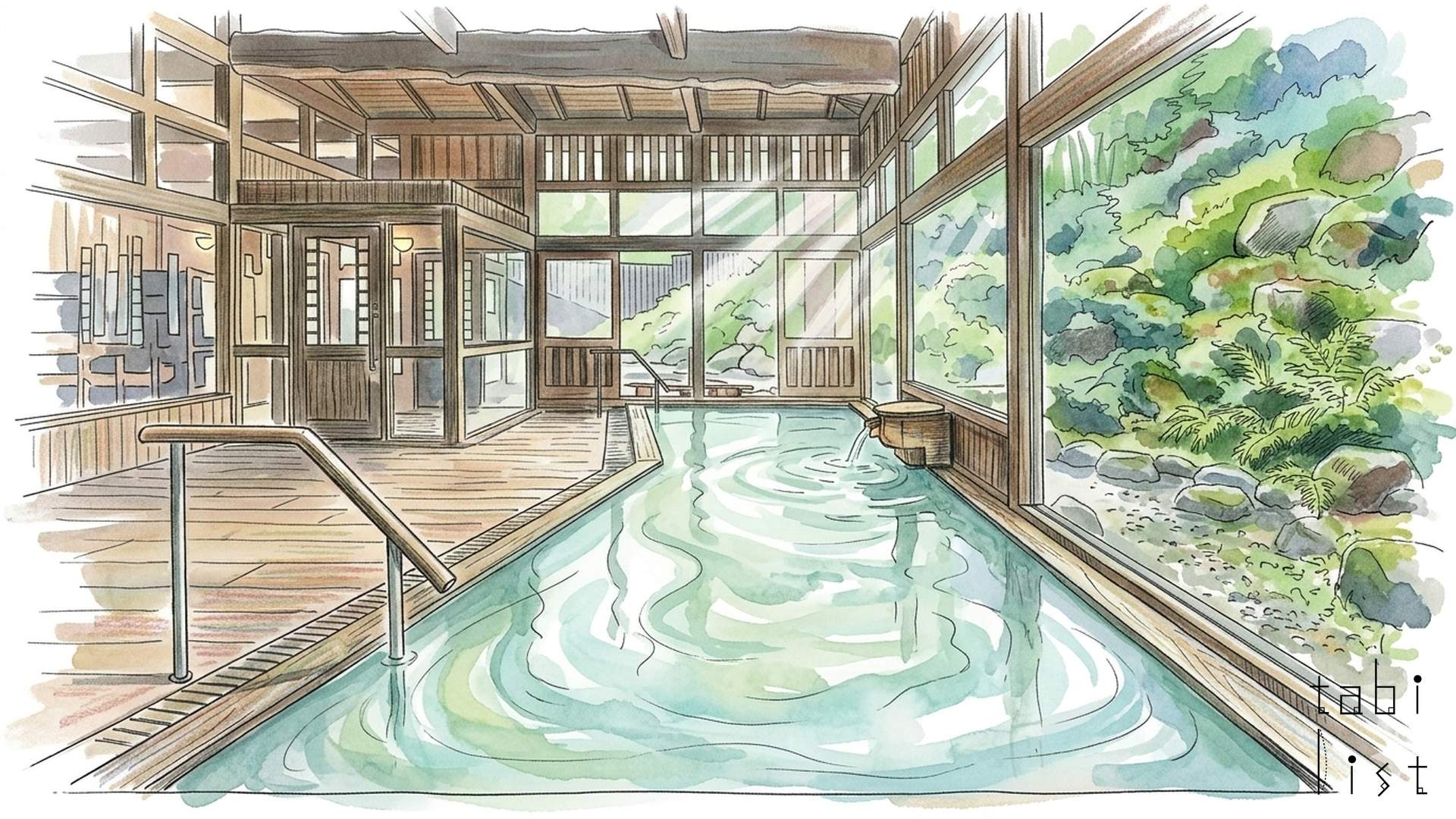 このホテルで一番の自慢は、なんといっても100パーセント源泉かけ流しの天然温泉、その名も八右衛門の湯でございます。八右衛門の湯の内風呂は、丸太の梁をそのまま活かした壮大な造りをしており、天井の高さは最高で6.5メートルにも達し、大変開放的な気分で温泉を楽しめます。硫黄の香りがふわりと漂い、木の温もりに包まれる和の趣あふれる空間には、やさしい間接照明が配され、一層心地よい湯浴みの時間を演出しています。泉質は酸性の含硫黄泉で、お肌に良いとされる成分が豊富に含まれており、「美人の湯」として多くの方に親しまれています。湯船に浮かぶ白い「湯の花」は、源泉かけ流しの証として、その恵みを伝えています。露天風呂は石造りで、温度の異なる二つの湯船がございますので、お好みに合わせて楽しむことができます。蔵王の雄大な自然を肌で感じながら入る露天風呂は、冬の雪景色の中でも格別の趣がございます。八右衛門の湯は24時間いつでも利用でき、時間によって男湯と女湯が入れ替わるため、異なる雰囲気のお風呂を体験できるのも魅力の一つです。また、ホテルには三つの貸切風呂もございます。広々とした檜造りの「山の恵み湯」、落ち着いた御影石造りの「森の恵み湯」、そして車椅子の方も安心して利用できるバリアフリー設計の「里の恵み湯」があり、ご家族や大切な方とプライベートな時間を過ごすことができます。これらの貸切風呂は宿泊の方も有料で、事前に予約が必要となります。過去には「温泉宿・ホテル総選挙2021」の露天風呂部門で全国1位に輝いたこともあるそうで、その質の高さがうかがえます。