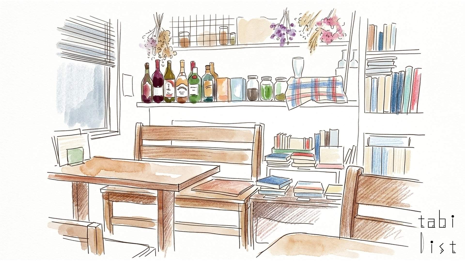 コーヒーやケーキ以外にも、心温まるメニューがそろっています。ふわふわの泡が可愛らしい「カフェラテ」は、一口飲むごとに優しい気持ちになれる、女性にも人気のメニューです。時にはクッキーが添えられていることもあり、ほっと一息つきたい時にぴったりです。軽食として、ヘルシーながらも満足感があると評判の「和風おじや」もございます。また、シンプルながらも素材の美味しさを感じられる「パンとチーズ」といったメニューもあり、お飲み物と一緒にゆっくりと過ごしたい方におすすめです。お酒の種類も豊富にございますので、夜カフェとして利用されるお客様もいらっしゃいます。