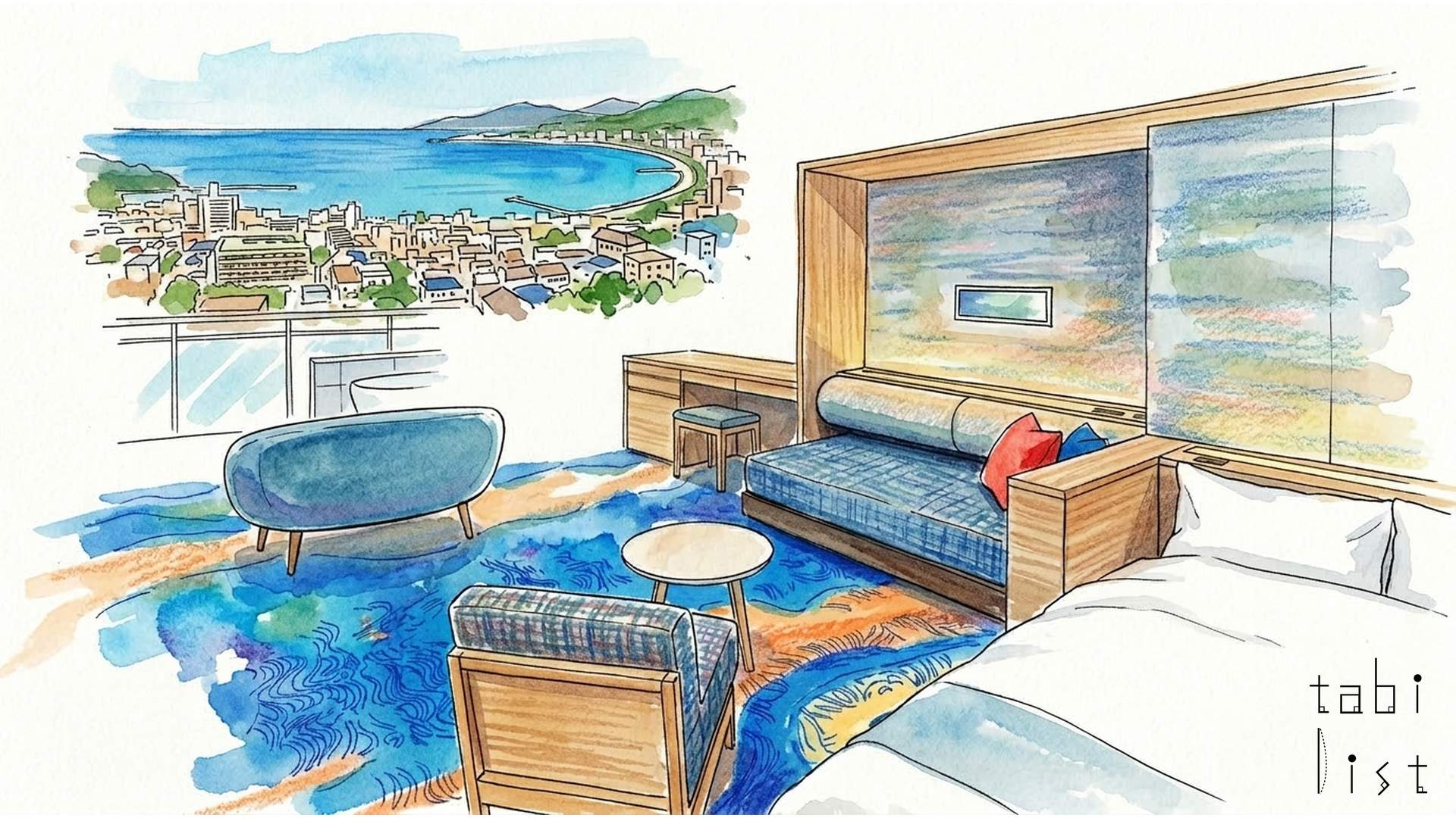 伊東の街並みと青い海を見晴らす高台に建つ伊東ホテルジュラクは、伊東温泉の恵みを存分に味わえる素敵なホテルです。南伊東駅からほど近い場所に位置し、JR伊東駅からは無料の送迎バスも出ており、アクセスも便利に整っています。