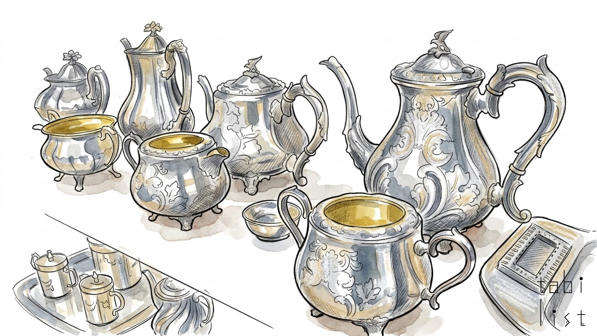 展示館で特に人気があるのは、普段の生活を格上げしてくれるような実用的な銀器です。代表的なものとして、銀製茶器が挙げられます。急須や茶筒など、職人が一点ずつ丁寧に仕上げた道具は、使い込むほどに味わい深い風合いが増していくのが魅力です。また、食卓を彩るカトラリーセットも、そのなめらかな口当たりと手に馴染む重量感から、贈り物としても選ばれています。銀には抗菌作用があることも知られており、美しさだけでなく実用面でも非常に優れているのが特徴です。