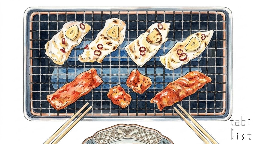 こちらでぜひ味わっていただきたいのは、お店の看板メニューでもある焼きふぐです。ふぐをただ焼くのではなく、まるで焼き肉のように楽しむという新しいスタイルが特徴で、ふぐの旨みが存分に引き出された逸品です。柔らかさの中に程よい弾力があり、「じょう身」や「あら身」といった部位ごとの美味しさを堪能できます。