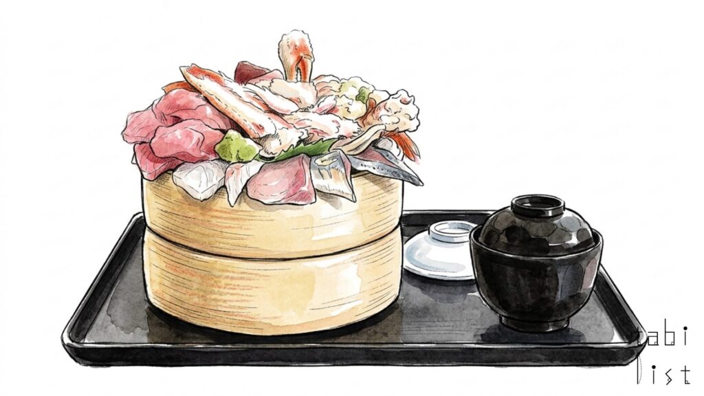 ランチタイムには、毎日内容が変わる日替わりの大将おまかせ丼が大変人気を集めています。その日一番の旬の魚介がたっぷりとのった一品で、彩りも豊かです。さらに豪華なプレミアムおまかせ丼もあり、こちらは大将の心意気が感じられるような、贅沢な盛り付けが特徴の海鮮丼です。